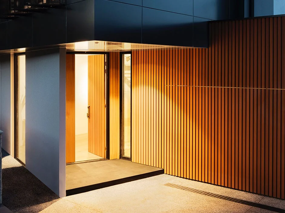 该空间四面环绕着墙壁,自然采光不足。于是我们使用了浅色的柏盾地板和清新的草坪来弥补这一点,同时增添了时尚简约氛围感。搭配上我们的封边,这便是一个完整精致的露台系统,符合绿色环保的前提和现代美学的要求。我们很开心能为这个精致且多元的项目做出了贡献。